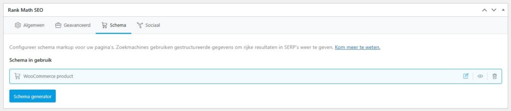 De implementatie van productschema op een webshop is afhankelijk van het content management systeem of platform. Shopify’s App Store bevat verschillende gratis en betaalde apps voor dit doel. Wix heeft bijvoorbeeld een ingebouwde oplossing. Bij WordPress dien je een SEO plugin te dowloaden. Een goede plugin hiervoor is bijvoorbeeld: RankMath.